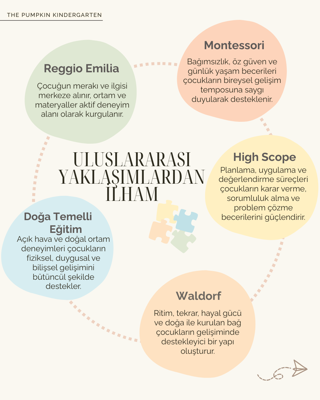 The Pumpkin Kindergarten, erken çocukluk döneminde çocuğun gelişim temposuna saygı duyan, doğayla temas eden ve oyun yoluyla öğrenmeyi temel alan bir eğitim ortamıdır.